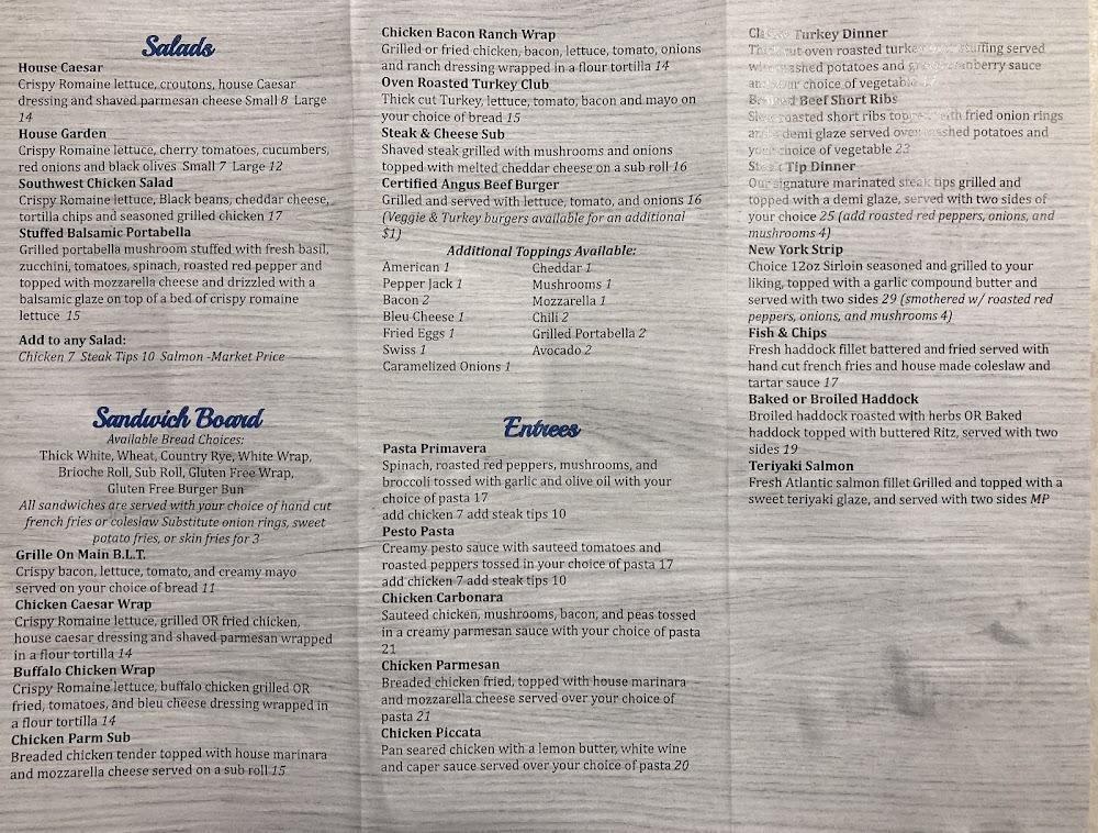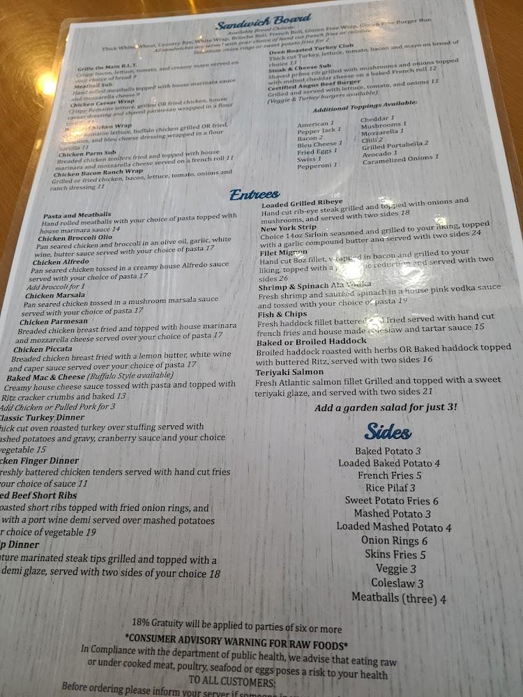 Grille on Main features an extensive menu that keeps diners coming back. From shareable appetizers to hearty entrées, there’s something for everyone. Explore options like chicken wings and loaded nachos for starters. For main dishes, favorites include burgers like the Cowboy Burger or Chicken Alfredo. This restaurant also offers a kid's menu that pleases young diners. Stay sweet with their rich desserts, including brownie sundaes and homemade cakes. Vegetarian options are readily available, ensuring everyone enjoys a delightful meal.